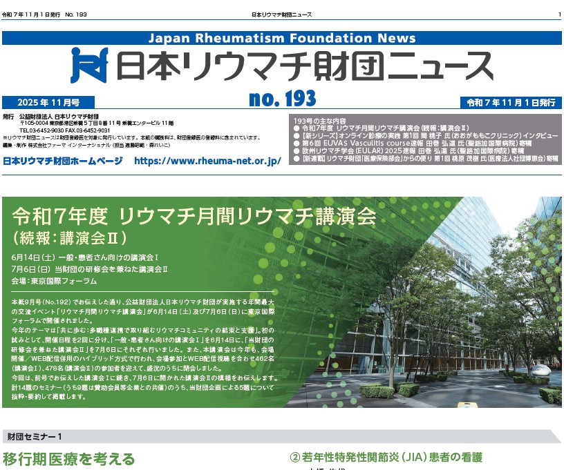 日本リウマチ財団は、昭和62年の設立以来一貫して、リウマチ性疾患の征圧に向け活動しています。