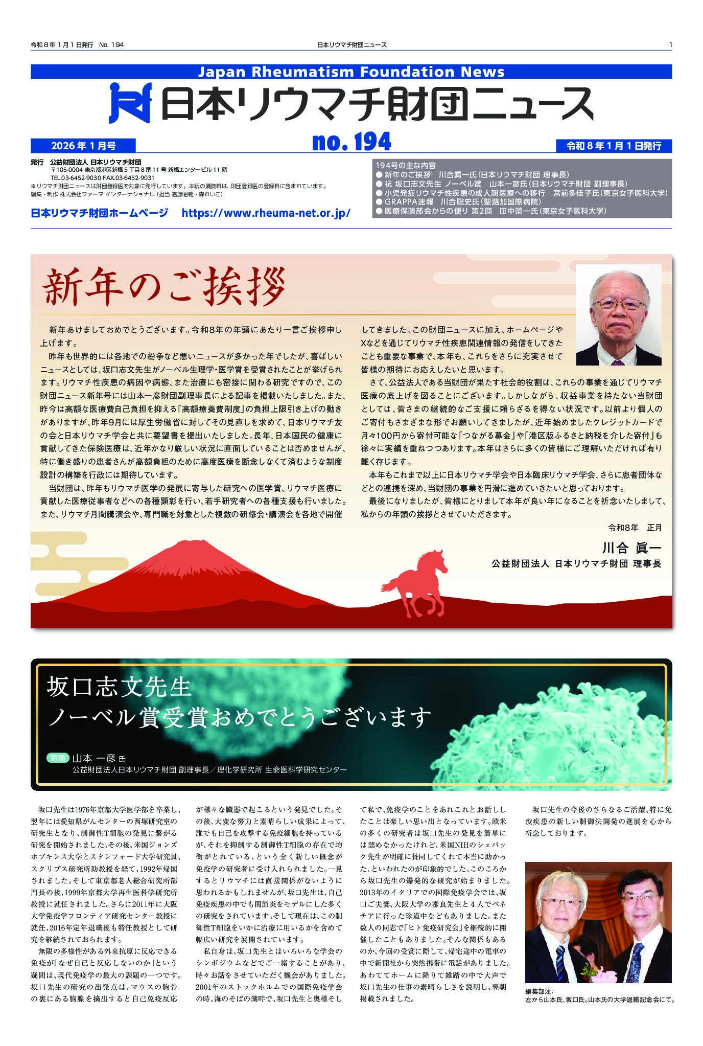 - 坂口志文先生ノーベル賞おめでとうございます:寄稿/山本一彦氏
